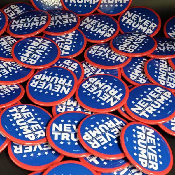 Show lifelong opposition with this Never Trump button, a bold statement against his presidency. It’s a perfect size for jackets, bags, or lanyards. A must-have for rallies and progressive activists. This Never Trump button measures 2.25" and features a safety pin back. Union-printed. Celluloid.
