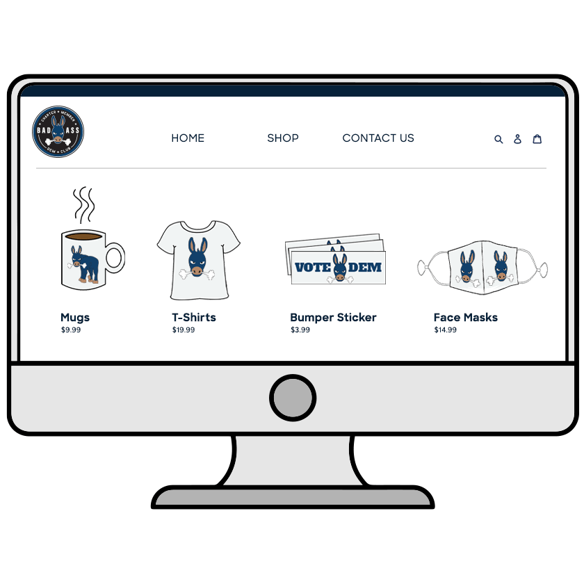 We here at The Blue Deal will provide you with a comprehensive e-commerce solution and it all starts with what you want to sell. All products for your store are pre-stocked which means they must be ordered upfront. This enables us to ship orders more quickly than on-demand options and yields a higher profit margin for you! Take a look at our Custom Campaign Materials for product ideas or consult with your dedicated sales rep.