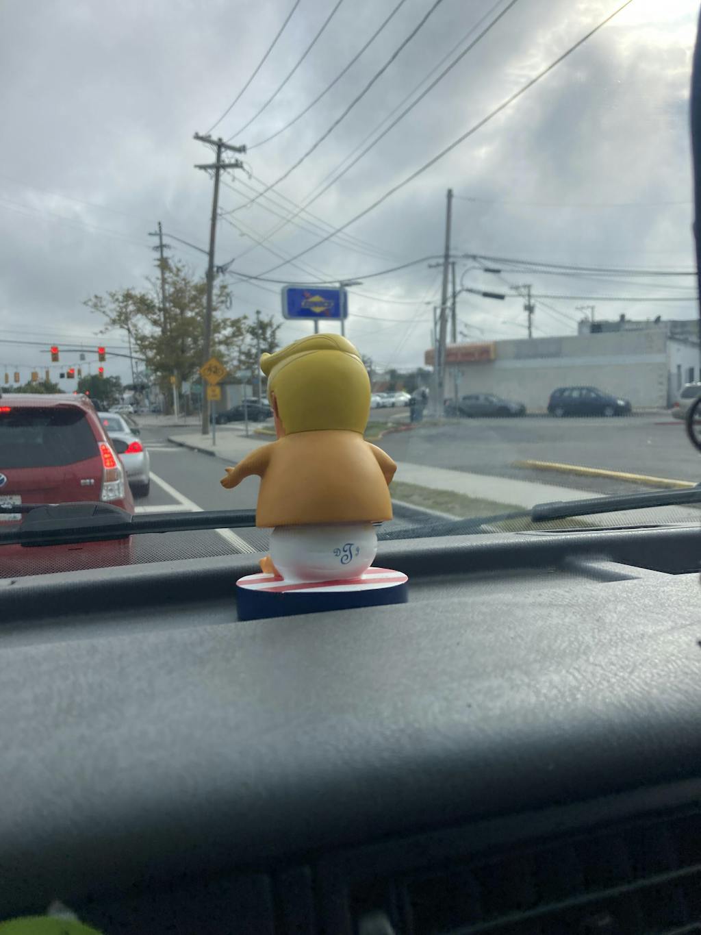 The Trump Baby Bobblehead is a replica of the infamous Trump Baby Balloon, designed to highlight one simple message: Trump is a big baby, unqualified for the role of president. A fun, conversation-starting collectible for political enthusiasts. Get yours today!
